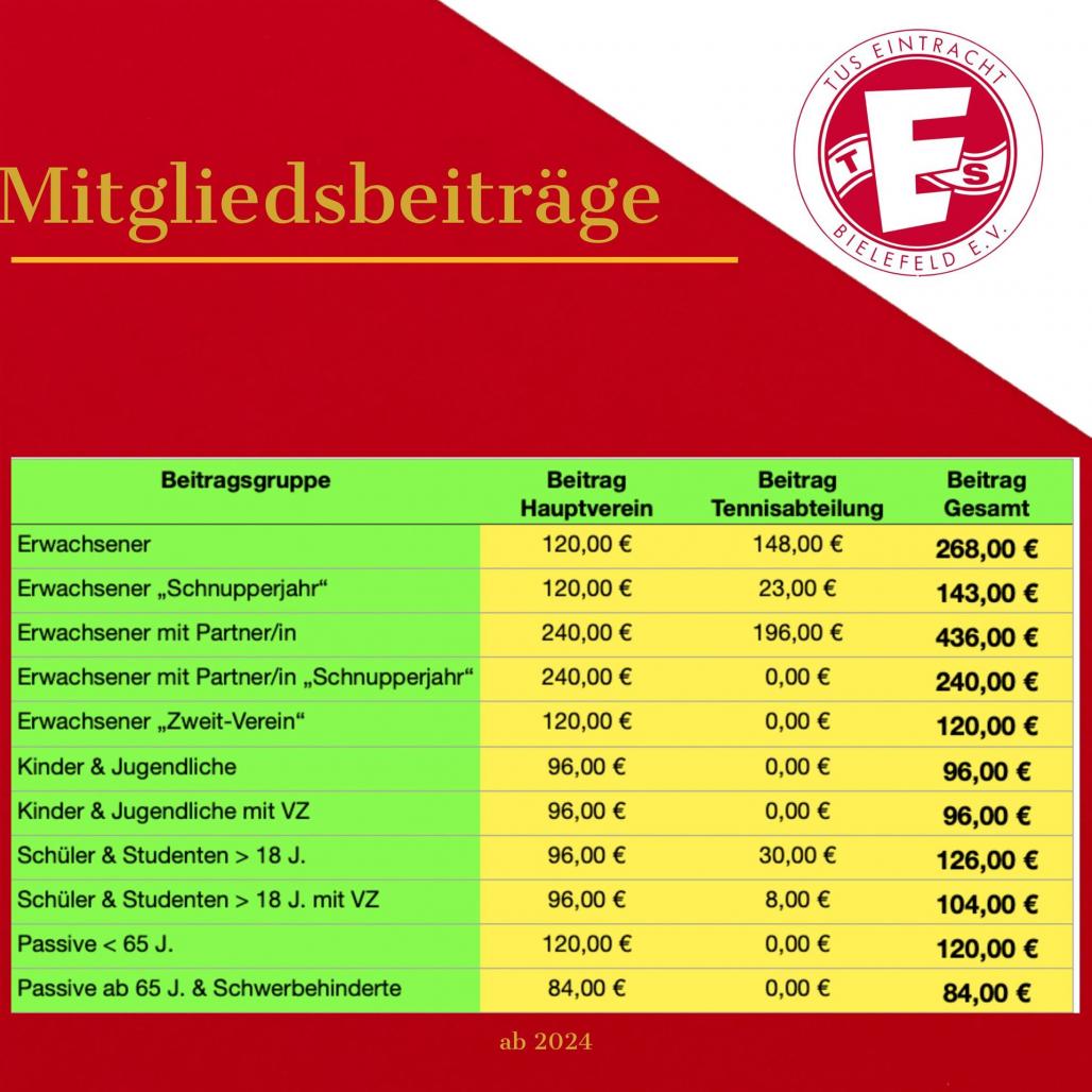 Für die Mitgliedschaft erheben wir die nachstehenden Beiträge. Diese berechtigen die Mitglieder zum Nutzen der Außenanlage.