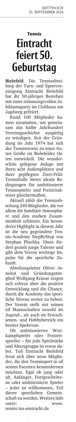 Festakt 125. Jubiläum TuS Eintracht Bielefeld e.V. am 23.05.2025